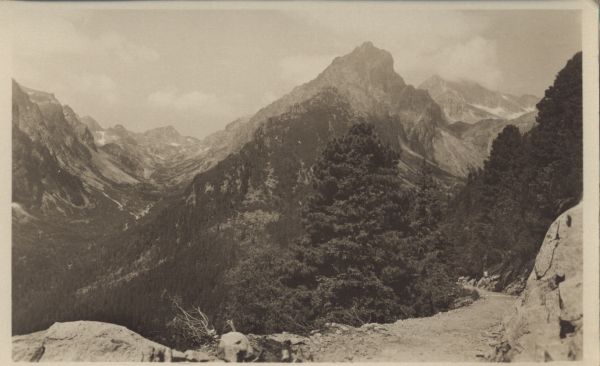 Vysoké Tatry - Pohľad z Magistrály na Malú a Veľkú Studenú dolinu s Prostředným hrotom 2440 m.