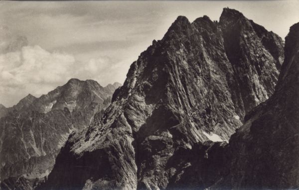 VYSOKÉ TATRY - pohµad zo severnej steny Vysokej na Ganek (2465 m) V pozadí Ąadový ątít (2630 m)