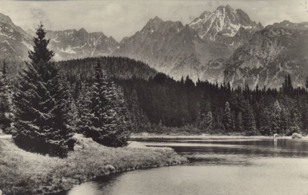 Widok znad Nowego Szczyrbskiego Jeziora na Wołowy Grzbiet, Popradzką Kopę, Wysoką i Osterwę.