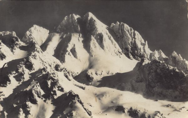 Ciężki Szczyt, Wysoka, Smoczy Szczyt i Szarpane Turnie w zimie.