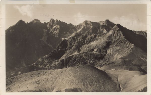 Widok z Tatr Bielskich na Przełecz pod Kop± i grupę Łomnicy.