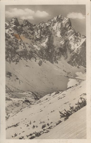 Pocztówka użyta w obiegu pocztowym, znaczek oderwany, korespondencja. Logo wydawcy. Dodatkowo pieczeć: "P.P. CHATA U POPRADSKÉHO PLESA 1513 m.n.m.".