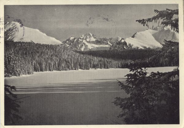 Szczyrbskie Jezioro zim±. W tle Skrajna Baszta, Popradzka Kopa, Wysoka, Osterwa i Tępa.