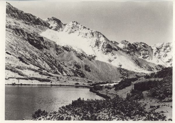 Przedni Staw Polski w Dolinie Pięciu Stawów Polskich zimą. W tle Szpiglasowy Wierch.