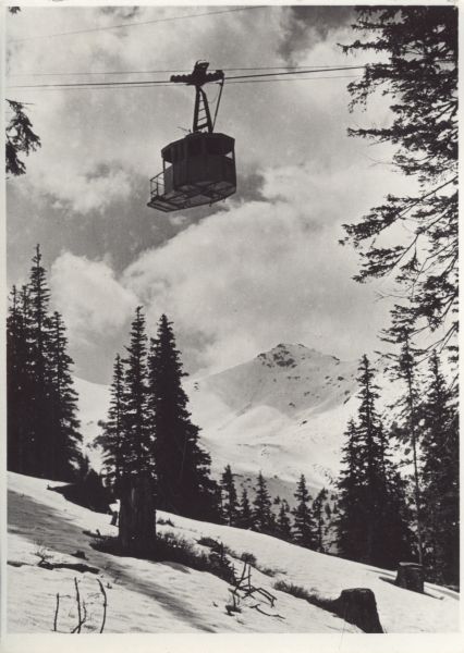 Wagonik kolei linowej na Kasprowy Wierch, w tle Goryczkowa Czuba zimą.