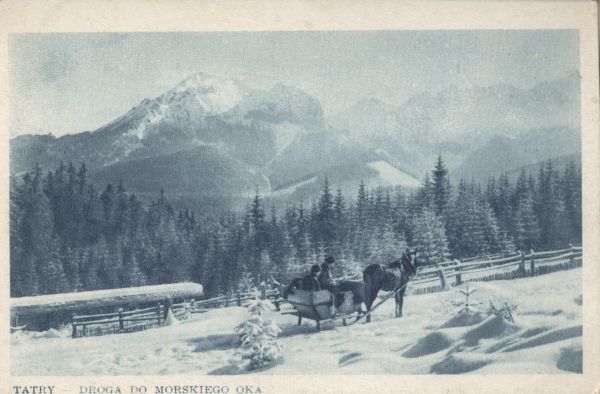 TATRY - DROGA DO MORSKIEGO OKA Z drogi do Morskiego Oka, z Hurkotnego widać w śnieżnej szacie, Tatry Bielskie, ciągnące się na wschód od Tatr Wysokich, i grupę Łomnicy w Tatrach Wysokich. Gościniec do Morskiego Oka obfituje w malownicze widoki i godny jest polecenia w zimie do wycieczki na saniach.