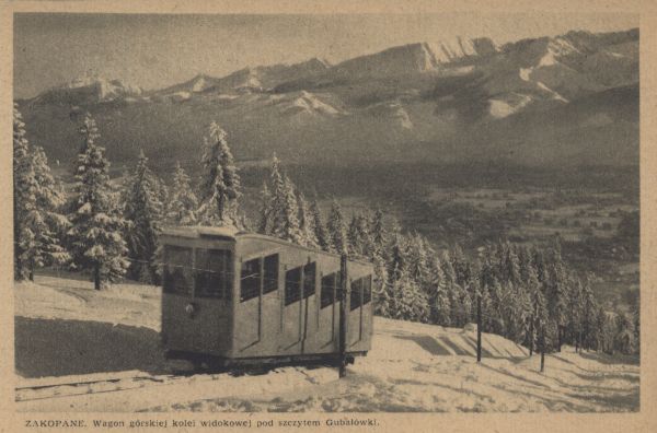 ZAKOPANE. Wagon górskiej kolei widokowej pod szczytem Gubałówki.