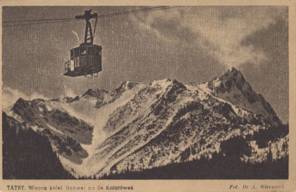 TATRY. Wagon kolei linowej na tle Kalatówek.