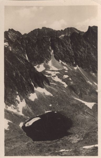 Widok na Capi Staw w Dolinie Młynickiej z Bystrego Przechodu. Nad nim Szatan i Grań Baszt.
