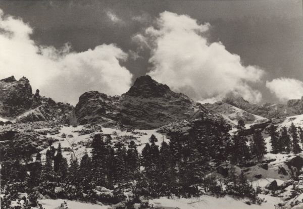 Żabi Szczyt Wyżni i Rysy nad Morskim Okiem zimą.