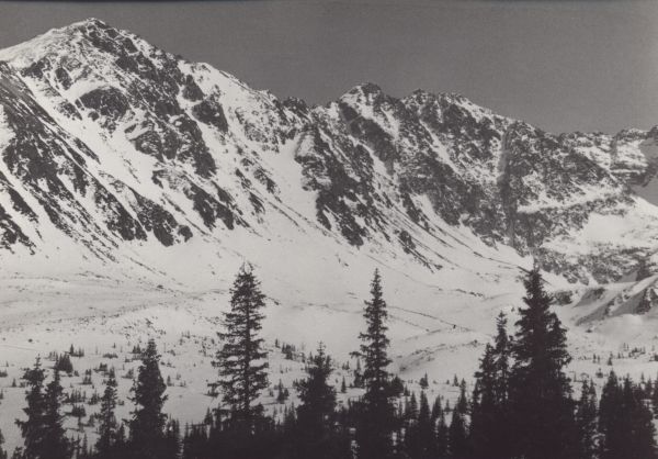 Widok na Żółt± Turnię i Granaty z Hali G±sienicowej w zimie.