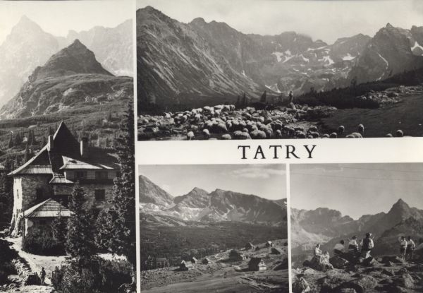 Kapela góralska. Pomiędzy zdjęciami napis: TATRY.