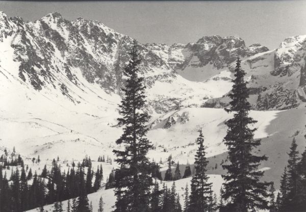 Widok z Hali G±sienicowej na Granaty i Kozi Wierch w scenerii zimowej.