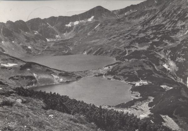 Pocztówka użyta w obiegu pocztowym, korespondencja. Logo wydawcy. Dodatkowo stempel okolicznościowy - widok znad Morskiego Oka.