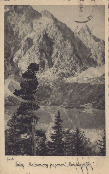 Pocztówka użyta w obiegu pocztowym, korespondencja. Dodatkowo pieczęć: "MORSKIE OKO W TATRACH 1400 m. SCHRONISKO POLSKIEGO TOWARZYSTWA TATRZAŃSKIEGO".