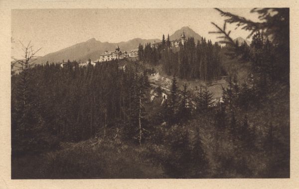 VYSOKÉ TATRY. Hotel "Hviezdoslav" na Štrbském plese, v pozadí Kriváň 2496 m a Krátká 2349 m.