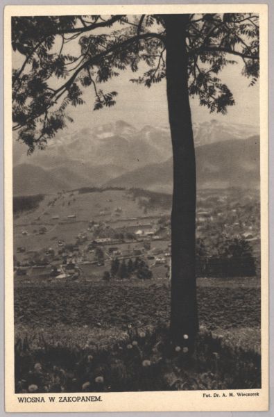 Na pierwszym planie jarzębina. W tle Zakopane. Dalej tatrzańskie szczyty (Świnica, Kasprowy Wierch). Pod zdjęciem drukowany tytuł i nazwisko fotografa.