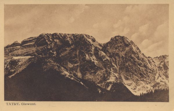 Widok na Giewont od północy. Pod zdjęciem drukowany tytuł.