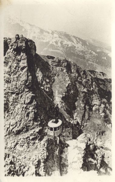Wagonik kolei linowej na Kasprowy Wierch w drodze na szczyt.