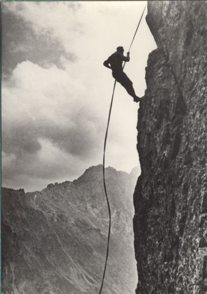 Taternik zjeżdżający na linie.