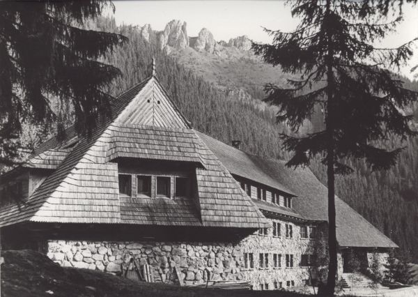 Schronisko PTTK na Polanie Chochołowskiej. W tle Mnichy Chochołowskie.
