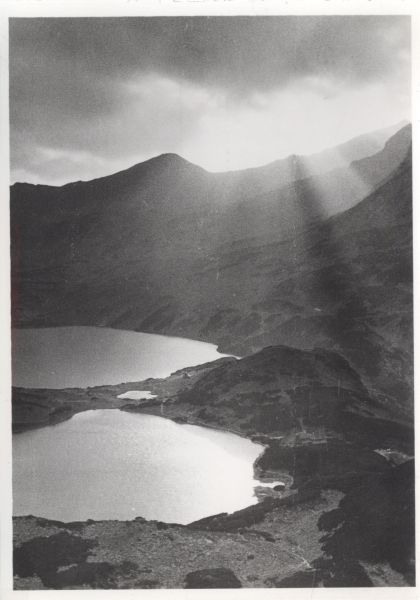 Widok ze Świstówki Roztockiej do Doliny Pięciu Stawów Polskich. W dole Wielki, Mały i Przedni Staw Polski (nad nim schronisko PTTK). W tle Gładki Wierch.