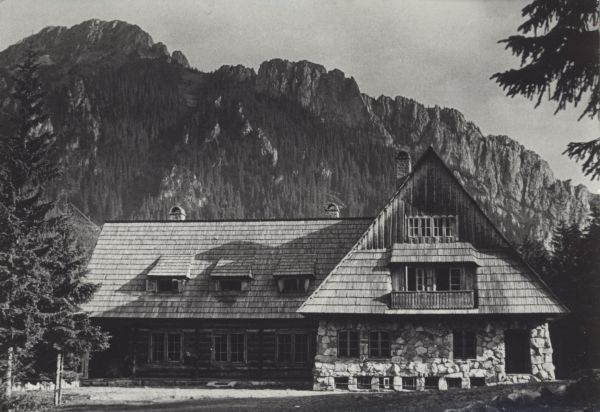 Schronisko PTTK na Hali Ornak w Dolinie Kościeliskiej. W tle Kominiarski Wierch.