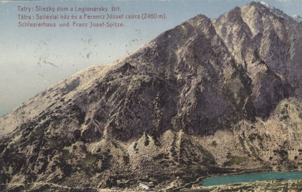 Pocztówka użyta w obiegu pocztowym, korespondencja. Dodatkowo pieczeć: "SLIEZSKÝ DŮM U VELICKÉHO PLESA 1680 m. VYSOKÉ TATRY.".