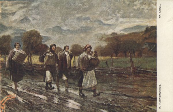 Reprodukcja obrazu Marcelego Harasimowicza pt. Na targ...