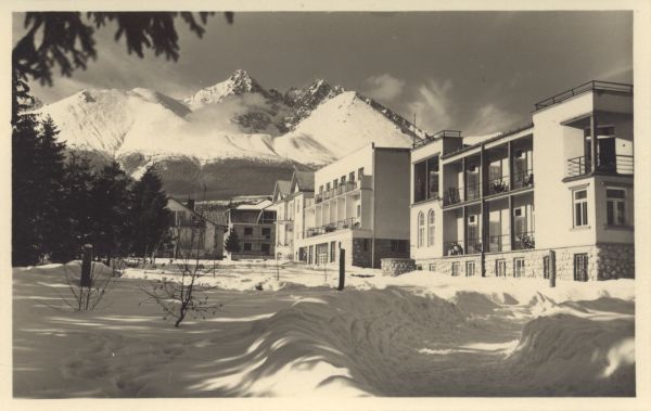 VYSOKÉ TATRY - Tatr. Lomnica. Pohµad na novú vilovú ątvr», v pozadí Lomnický ątít.
