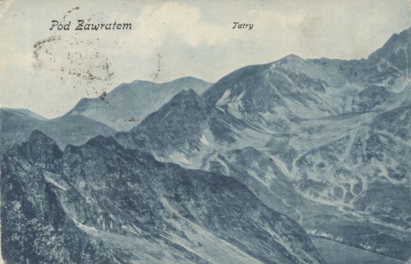 Widok ze Szpiglasowej Przełęczy na Gładki Wierch. W dole Czarny Staw Polski. U góry drukowany tytuł.