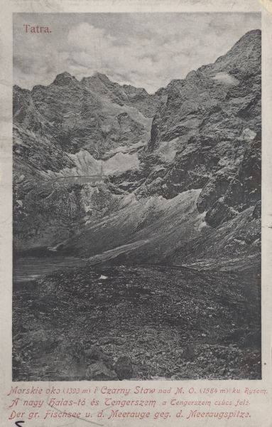 Tatra. Morskie oko (1393 m) i Czarny Staw nad M. O. (1584 m) ku Rysom.