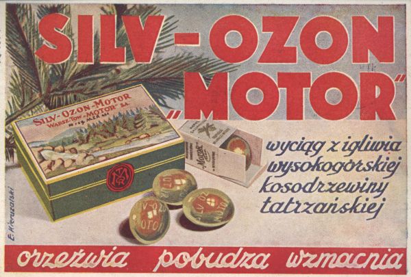 Plakat reklamujący wyciąg z igliwia kosodrzewiny tatrzańskiej SILV - OZON - MOTOR.