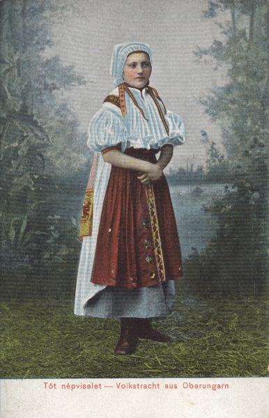 Ludowy strój z Górnych Węgier. Tytuł również w języku: węg.