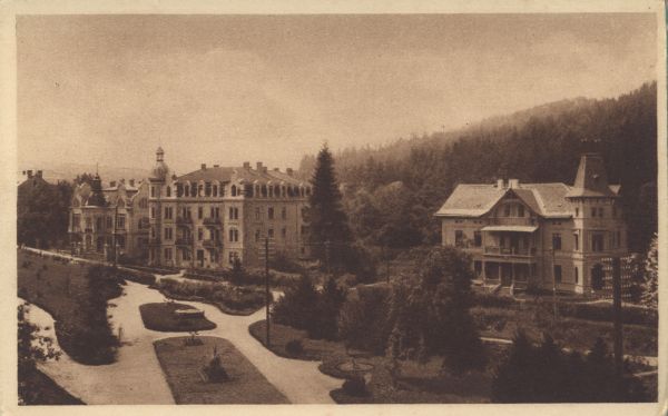 Park zdrojowy i zabudowania w Tatrzańskiej Polance.