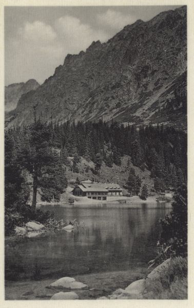 Schronisko nad Popradzkim Stawem w Dolinie Mięguszowieckiej. W tle Popradzka Kopa.