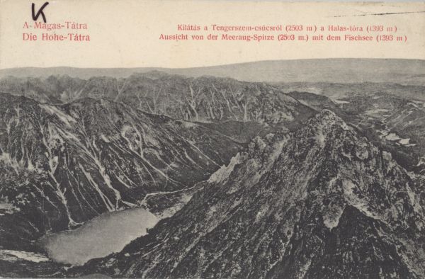 A-Magas-Tátra Kilátás a Tengerszem-csúcsról (2503 m ) a Halas-tóra (1393 m )