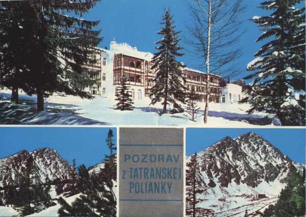 POZDRAV z TATRANSKEJ POLIANKY VYSOKÉ TATRY - WYSOKIE TATRY - HOHE TATRA - THE HIGH TATRAS - LES HAUTES TATRAS Tatranská Polianka - Liečebňa TBC. Gerlachovský štít 2655 m a Sliezsky dom.