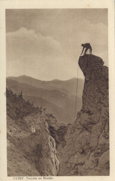 Ćwiczenia taternickie na Nosalu. Pod zdjęciem wydrukowany tytuł.