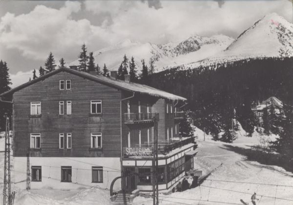 VYSOKÉ TATRY - Štrbské Pleso (1351 m) Hotel Solisko. Kriváň (2496 m), Sedielko (2380 m), Ostrý (2349 m), Solisko (2414 m).