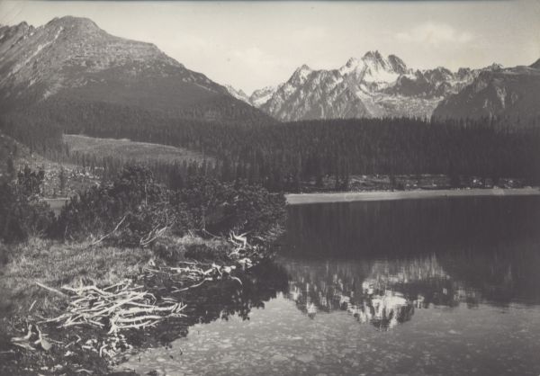 VYSOKÉ TATRY - Štrbské pleso (1350 m) Pohľad na panorámu Vysokej (2560 m). Vľavo Patria (2203 m), Kôpky (2354 m), vpravo Ostrva (1984 m) a Tupá (2284 m)