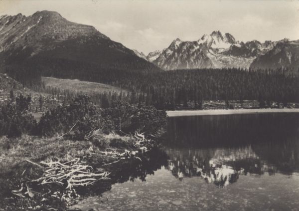 Na pierwszym planie Szczyrbskie Jezioro. W tle od lewej widać Skrajną Basztę, Kopę Popradzką i Wysoką.