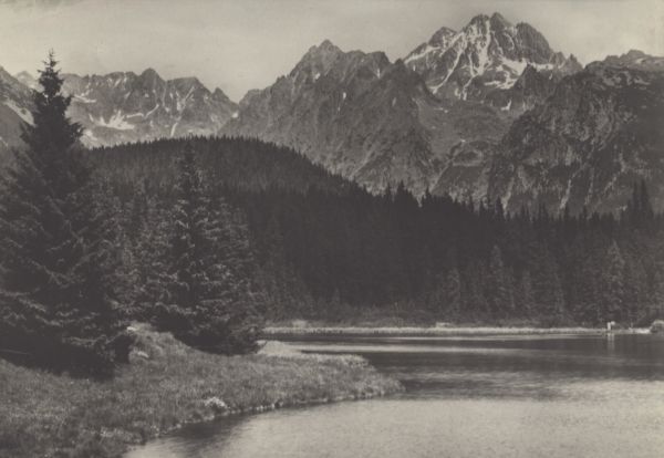 Widok znad Szczyrbskiego Jeziora na Wołowy Grzbiet, Popradzką Kopę, Wysoką i Osterwę.