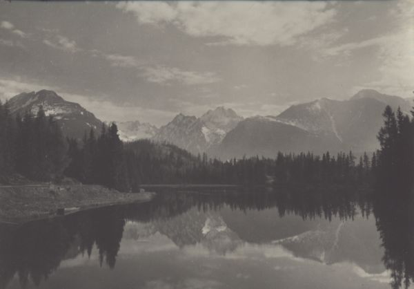 VYSOKÉ TATRY Pohľad od Nového Štrbského plesa 91315 m) na panorámu Vysokej (2560 m)