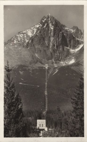 Po¶rednie stacje kolei linowej na Łomnicę. W tle szczyt Łomnicy.