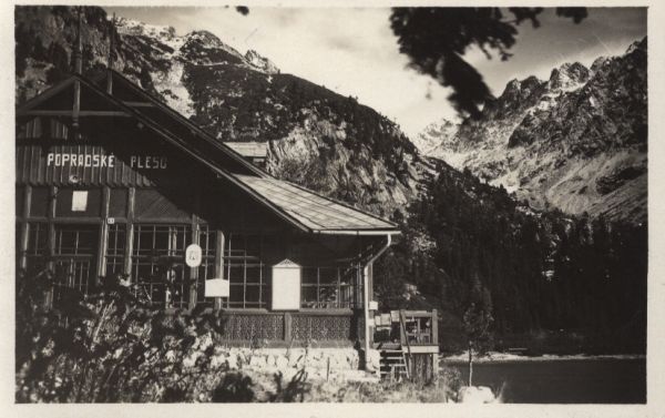 Pocztówka użyta w obiegu pocztowym, korespondencja. Dodatkowo pieczęć: "Chata u Popradského Plesa P.P. 1513 m n.m.".