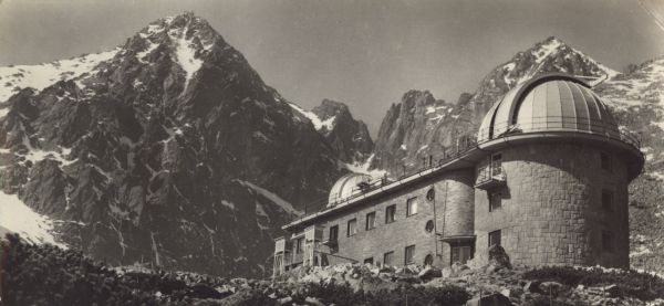 VYSOKÉ TATRY. Astronomický ústav SAV v Skalnatej doline. V pozadí Lomnický ątít (2634 m), Vidlová veľa s Vidlovým sedlom a Keľmarský ątít (2558 m).