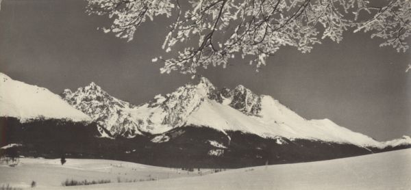 Poh”ad na Vysoké Tatry od juhu. Z”ava: Prostrednę hrot (2440 m), Malá Studená dolina, Baranie rohy (2526 m), Lomnickę čtít (2632 m) a KeŸmarskę čtít (2558 m) nad Skalnatou dolinou.