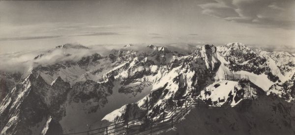 VYSOKÉ TATRY - pohµad z Lomnického ątítu (2634 m) na západ. Zµava: Ąadový ątít (2630 m), Malý Ąadový ątít (2611 m). V pozadí na horizonte Rysy (2503 m), Vysoká (2565 m). Vµavo v pozadí Prostredný hrot (2440 m) a ®ltá veľa (2384 m).