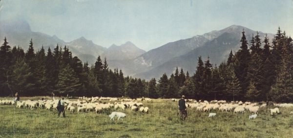 Wypas owiec pod Tatrami. W tle Kołowy Szczyt i Jagnięcy Szczyt.